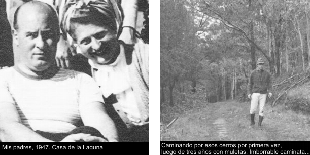 Ese aislamiento continuó inconscientemente por mucho tiempo más, después del camino y de la ruta, porque la gente del mar, cuando salía, agarraba siempre para el este, por el camino Lussich; o por la costa, cuando por 1960 se construyó la trepada desde el Portezuelo por encima de la Sierra de la Ballena. Muy pocos venían tierra adentro. Recuerdo, sí, con mucho cariño, las visitas a mi casa de las nietas y nietos de don Antonio Lussich, los Del Castillo (Héctor, Nicasio, César, y el Rubio, que llegaban montados en briosos caballos como el Babieca y el Jagüel, pingos que cuando llegaban yo admiraba con embeleso, acostumbrado a montar en pelo a mi petiso bayo, entre los caballos que montaban en casa (el "Trébol" flaco y alto, el zaino "Salvaje", el Morito negro, el tordillo Chubasco, el Rubio y el Picaso ). Recuerdo las visitas de Eleonora Rossi, Adolfo Alonso (Alonsito), los Garese y otros. Como también la visita de sus madres - las señoras hijas de don Antonio, que llegaban en un antiguo auto negro cuando ya el sendero del bosque estaba mejorado o construido el camino nuevo. Camino éste dibujado con artísticas sinuosidades entre los árboles por donde corre hoy la Ruta 12, por César Del Castillo para que el visitante pudiera disfrutar los verdes de la Naturaleza, en vez de que la municipalidad la hiciera en línea recta entre las dunas.