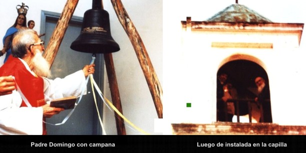 Como agradecimiento por lo que fuera el padre Domingo, la madre Giovanna le envió un regalo muy especial: una gran campana de bronce, obsequio a la Capilla de la Laguna del Sauce. Toda la gente de la zona fuimos testigos, de una manera u otra; no solo receptores, sino también partícipes en el costo del transporte y en la colocación. La campana, con gran unción, fue bendecida y colocada por el padre Domingo. Su primer tañido fue al impulso alegre de las manos de este querido padre de todos.